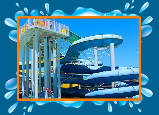 If you dare, climb onto our four story tower where people overcome our mighty and adventurous fortress by sliding down our 4 slides for spills and thrills. Test your courage and face our slides: Two (open and closed) slides are single rider body slides and two (open and closed) slides are tube slides. Double up and overcome our slides with your partner by using yellow double rider tubes, available at the end of run out of the water slides. If you prefer to face the slides on your own, rent an inner tube to use at the retail shop.